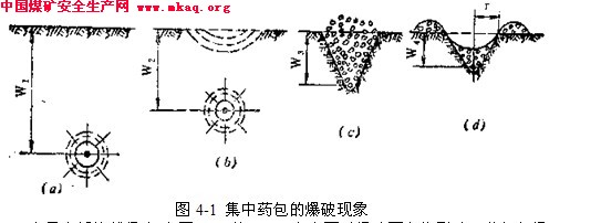 ��������������������һ�� ����ԭ���뱬�Ƽ���һ���ڱ��������µ���ʯ������������һ�����λ���������ըҩ��(�����ϳ�֮Ϊ����ҩ��)������ʯ�У���ʯ�������ӵı���������棬ҩ�����ĵ�������Ĵ�ֱ�������С�ֿ��ߡ� ͼ4-1 ����ҩ���ı������� ����С�ֿ��ߺܴ�ʱ(ͼ4-1a��W1)��������Ա��Ʋ�����Ӱ�졣ҩ����ҩ����������ʯ�ܱ��䲨�ͱ��������ij�������������Ե������ѹ����һ���ն�����������Ϊ����(��ѹ��)������Ȼ����ѹ��������ʯ�Ŀ�ѹǿ�Ⱥܶ����һ����ʯ�����ڶ��ݵij���µ�ǿ�ȱȾ�ѹʱ��ǿ��Ҫ�ߵö࣬��������ʯ�д�����Ӧ���������������ڷ�����ʯ���ܿ�˥�������Է������ķ�Χ������������������϶���������ݺύ��ľ�����϶�ͻ�����϶����������ѹ��Ӧ�����ڴ���ʱ��������Ӧ��������������������ij�����������γɵ��ƻ�������϶����������Ӧ��������˥������������϶Ҳ���ܲ�����ֻ��ʹ��ʯ�����ʳ�Ϊ������������ըҩ��С���ֿ��ߴ������£��ɱ������ö��ƻ��ķ�Χ�Ƚ�С�� ��С�ֿ���СһЩʱ(ͼ4-1b��W2)��Ӧ��������������˥���ij̶Ȼ������������洦�������䡣���䲨���Կ������������Ӧ������С��ȡ������෴�����첨������ʯ�Ŀ���ǿ����ԶԶС�ڿ�ѹǿ�ȣ���˾Ͳ�������������ҩ��������������ƻ�������ƻ������������(��Ƭ��)���� ��С�ֿ�����СһЩʱ(ͼ4-1c��W3)������������϶��������������������������Щ��϶�����ʹ��϶������ʯ�ƶ������ǿ���������һ�����ʯ����ȫ�ƻ����γ�©��״�Ŀӡ�����ʯֻ�����ɶ������ɶ�©���������ɶ����ҽ���ʯ������ȥ��������©��(ͼ4-1d)��ͨ����©���Ӱ뾶r����С�ֿ���W�ı�ֵ������������ָ��n���� (4-1) ��n��1ʱ�γɵ�©���ӳ�Ϊ������©����3��n��1ʱ��������ǿ����©��(n>3�ƻ���ʯ���٣���ʹ�ü�ֵ)��0.75��n��1ʱ���м�������©����n��0.75ʱ����ʯֻ�����ɶ������������������ɶ�©���� n��0.75ʱ��©���ӽ������γɣ�һ����Ϊn��1ʱ�γɵ�©������������������ã���n�Դ���l(Լ1.3��1.4)ʱ���ɼ������������ʯ�Ĺ�������n��С��1(ԼΪ0.8��ʱ����ʯ���·�ɢ��Զ��ʹװ�������С��ɼ���������ָ��Ӧ������Ҫ����ѡ�á��������ı�������ָ��һ��ѡ����0.8��1.0֮�䣬�Ͳ��ۿ����Դ���1�� ������������htt ��һҳ[1][2][3][4][5][6][7][8][9][10]...��һҳ>>