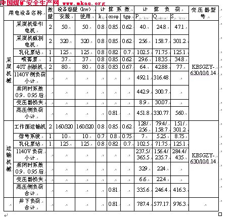 ����ӿˮ�����٣�С��Χ�ڵ���ˮʹ�÷�á� ˮ������ˮ�ܼ��������������ˮ����ÿ̨ˮ�ü���밲װ��ֹ������ˮ�ؼ��ص�ı�����ˮ�豸����ʩҪ������һ�ױ��á���ˮ����ʱ�����ٰ�����������ʱ��������ˮ��ʩ����ʹ�ã���ֹ��ʹ��ʱ������ջ������ˮ�ò�ʹ��ʱ����ر���Ӧ�Ľ�ֹ����������������ˮ����ˮ�� ���²ֿ���Ҫ���һ̨DZ�۱ü���Ӧ���غ���̨�����Ϊ������ˮ�豸��Ҫ���������ޣ�ȷ����á� ��3�������漰����������ˮ ���ڹ�������ú��װ�ʵ�б�����ɻط�˳��������˳����б�������150m��Χ�⣬������Ϊ��һ��α��б��б���ɡ������ڹ�����زɳ��ڣ�ǰ150m���ƹ���ε��ʹ��췢���ش�ǰ���������ˮ����������˳�ۣ�ͨ���¶�ͷ��DZ�۱�������˳�۵���ˮ��·�ų���������������л�ˮ�����������������¶�ͷ������ˮ��������ز����������������ݴ��Ļ�ˮ������������������DZ�۱�ͨ���������ˮ��·�ų��� �ڹ������ƹ���ε�150m֮�����ϡ��������DZ�۱ã�ֻ�����¶�ͷ��DZ�۱á������������ˮ����ʹ�÷��ֱ��ͨ���������ŵ��ɿ�������� ��������ʱ����ѡ���ڵ��Ƶ��ݻ�ˮ������ͺ�������֧�ܵ�����ΰ����ͻ����²�֮�儷�ڱ��ѣ�����������ɳ�������赲��ú����õķ�ܺ���ˮ��·���ڵ��²���࣬����֮����õ��ɹ���ͨ�� ��4������˵�� ���ݹ����������ʵ��ӿˮ���仯�������ʱ����ˮ�õIJ��á������ˮ�ֲܾ������������ڱ��Ѽ������ʱ��·����ò�ȡ������ˮ�� �ġ�����ϵͳ 1�����緽ʽ Ϊ��֤������Ĺ������������ϰ�ȫ���������ݹ��緽ʽ�������ԭ��������������һ��10kV��ѹ������ƽ�ϡ������ﲢ�����빤�����豸�г�����1# �Ʊ��2# �Ʊ䡣��������Ҫ�õ��豸����1140V��ѹ�������źŲ���127V���硣 2�����縺��ͳ�� ���������ͳ�Ƽ��±� ���У�Cos�� �� �������� tg�� �� ��λ�� Kx �� �۲ɹ������õ��豸������ϵ�� Pjs �� �����й����ʣ���λKW Qjs �� ���������ʣ���λKVar Sjs �� �������ڹ��ʣ���λKVA