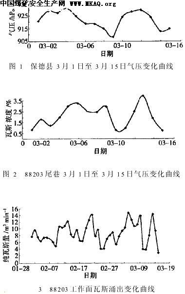ͼ1Ϊ������2005��3��15����ѹ�仯�����ͼ2Ϊ8203β��3��1����3��15����˹Ũ�ȱ仯�����ͼ3Ϊ88203��������˹ӿ�����仯���ߡ�