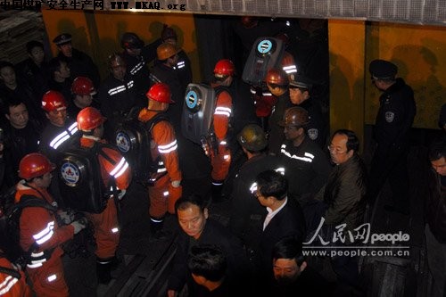 救援人員排隊下井。(人民網記者鮑丹 攝)