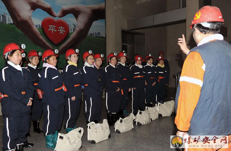 11月25日,安徽淮北礦業朱仙莊礦組織生產一線職工家屬帶著慰問品來到井下采煤工作麵,體驗艱辛,慰問親人,叮囑安全。該礦充分發揮親情在安全生產中的作用,用父母愛、夫妻情、子女盼築牢安全防線。圖為職工家屬下井前正在接受安全知識培訓。