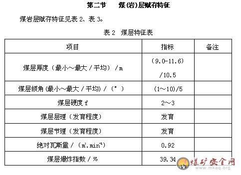 自然發火傾向,發火期6個月,煤塵有爆炸危險性,爆炸指數39.34%。