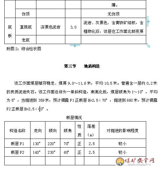 本礦層低瓦斯礦井、盤區相對湧水量3.64M³/個,絕對湧出量0.92M³/min。煤層有