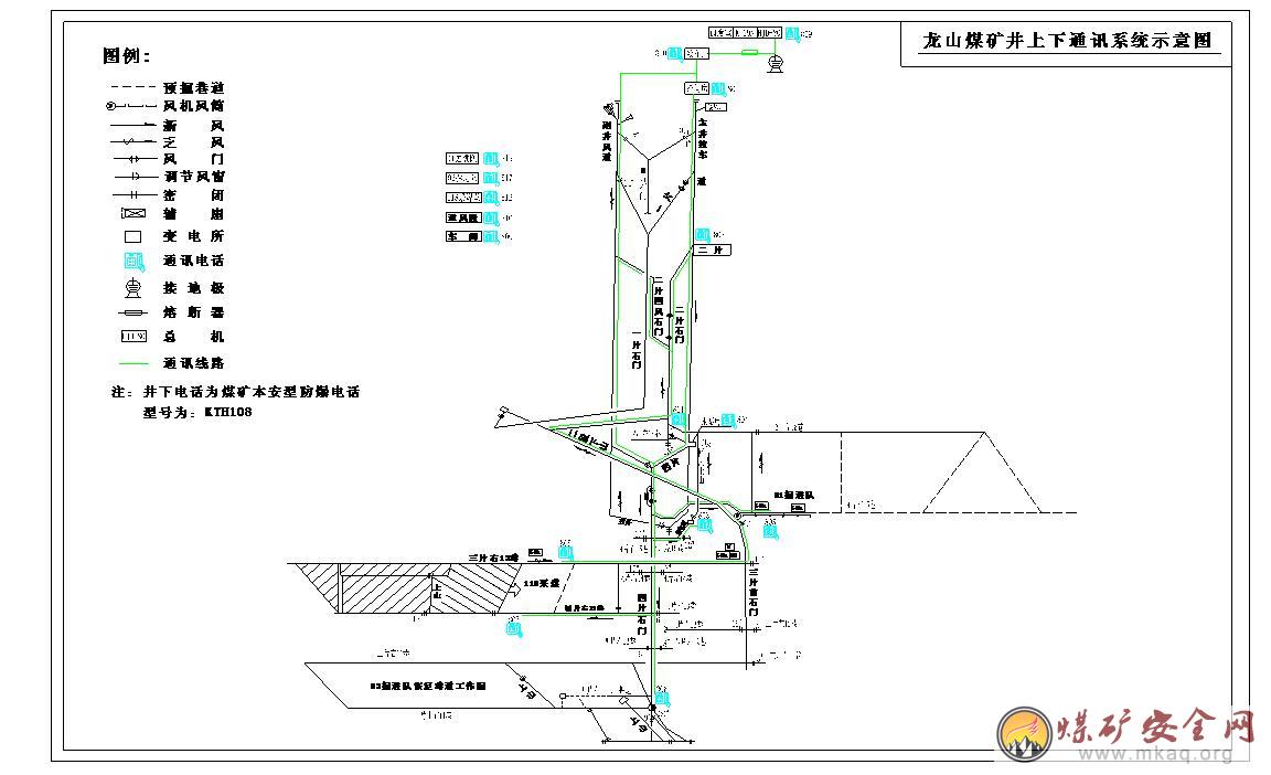 12、通訊聯絡係統:我礦生產調度電話總機型號HJD—80,井下本安型電話機型號:KTH108,雙電源電路達井下每個電話,且井下每個電話都能直接打到調度室總機和每個礦長辦公室。