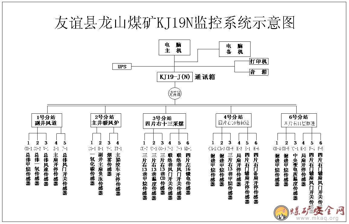 采用KJ19N型升級安全生產監測係統,地麵微機監測室雙電源與各采掘工作分站相連,並且與市、縣、省監控監測係統相連,現工作運行狀態良好。
