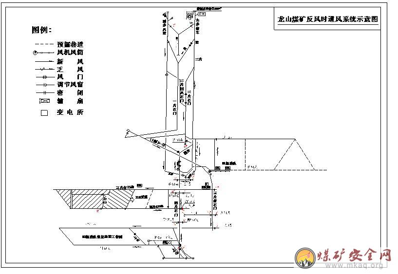 礦井的通風方式為中央並列式,主井總入風,副井總回風。礦井等積孔為1.6m2 ,屬低瓦斯礦井,礦井瓦斯相對湧出量為:6.19m3/t,絕對湧出量0.506m3/t。