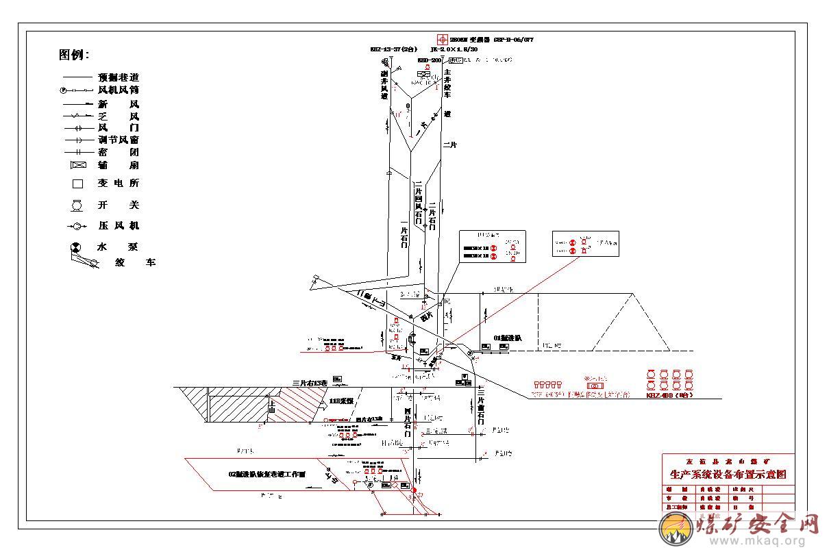 主要扇風機型號為KBZ—13—37型。總入風量為1180m3/min,總回風量1230m3/min。並上齊了主扇開停傳感器,與礦、市、縣、省監控監測係統相連,現工作運行狀態良好。