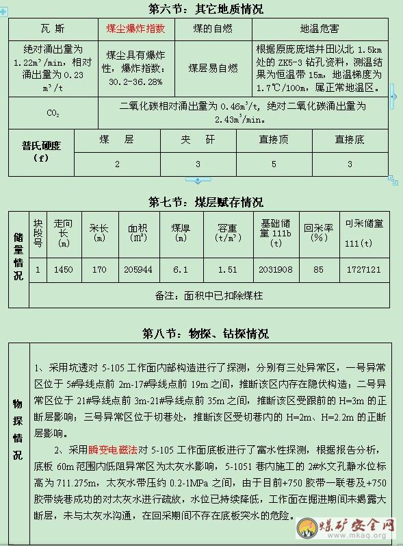 一、名稱:5-105綜放工作麵采用一次采全高綜采放頂煤走向長壁采煤法。