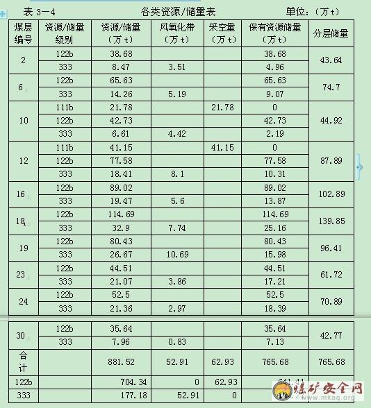 (1)保有資源量=(122b)+(333)=765.68萬t。