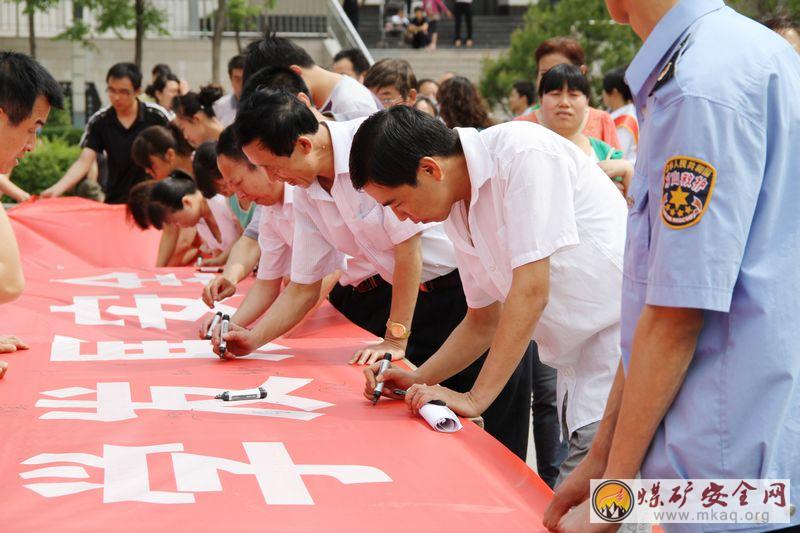本網訊 為進一步強化安全生產宣傳教育工作,普及安全知識,弘揚安全文化,營造“科學發展,安全發展”、“關愛生命,關注安全”的濃厚氛圍, 6月10日,銅川礦業公司下石節煤礦開展了“安全生產谘詢日”活動,該礦黨政領導和廣大幹部職工1000餘人共同進行了安全宣誓和安全簽名。