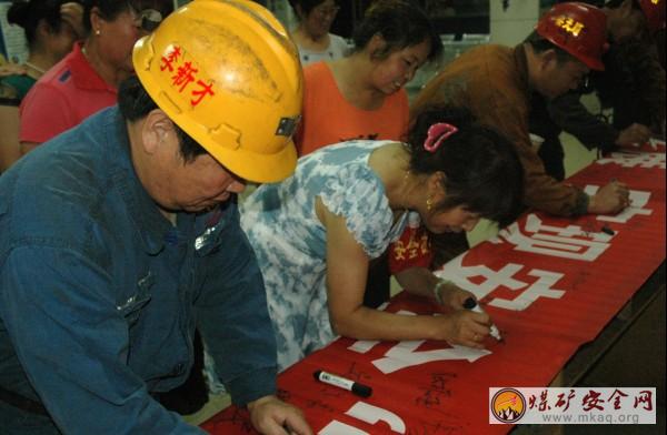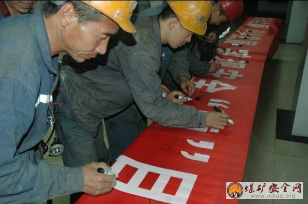 該礦在加大井下安全生產監督檢查力度的同時,礦工會在侯罐廳組織開展了安全簽名、親情囑安全、群監員安全幫教等形式多樣的安全活動,營造濃厚的安全生產氛圍,提醒入井的職工注意安全。活動期間,上下井的職工紛紛在安全條幅上鄭重的簽上自己的名字,承諾遵章守紀、按章作業、告別違章,自覺搞好安全生產,進一步擰緊安全“螺絲”。活動持續了一個多小時,吸引了數百名職工和職工家屬參與,收到了良好的安全宣傳效果。活動結束後,工作人員把簽滿職工名字的條幅懸掛在副井口的醒目位置,時刻提醒上下井的職工注意安全。(劉旭鄒洋)