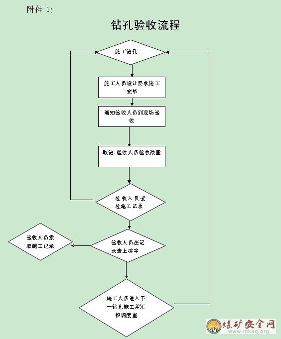 3.2.2探放水鑽孔、地質鑽孔由現場施工負責人、安檢員、工程部地測人員負責驗收。