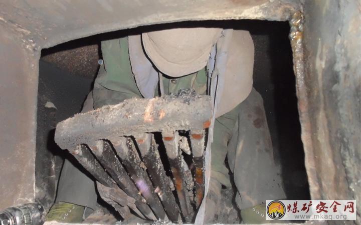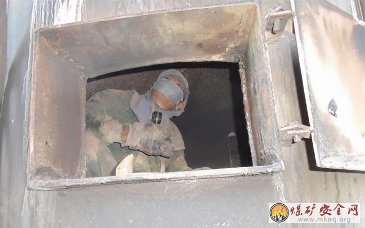 元寶山露天煤礦采礦一部小鍋爐是2噸常壓鍋爐,為300多人的洗浴供水。由於單人作業,維護檢修困難,鍋爐工時常為小鍋爐的維護檢修缺人缺材料找到該部黨支部書記,黨支部書記積極協調班組人員參與小鍋爐檢修維護,保證了職工班後正常洗浴。(圖為班組人員更換爐底、檢查管路)