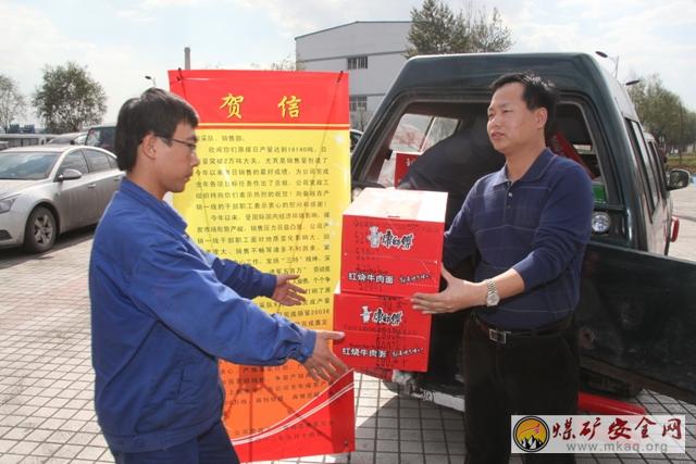 14日下午,慰問團一行來到該公司銷售部和綜采隊的職工學習室,向幹部職工宣讀了慰問信,並將帶來的方便麵、麵包、牛奶、涼茶等慰問品一一發放到職工手中,對他們付出辛勤勞動和所取得成績表示感謝和祝賀,並鼓勵廣大幹部職工繼續努力,爭取產銷再創新高。(安文光/文 張騫/圖)