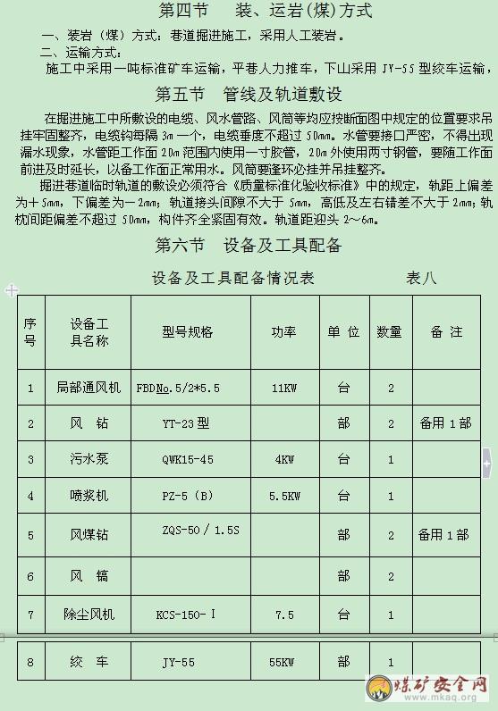 4、掘進過程中應保持工作麵退路暢通。所用材料必須存放在指定地點並不得防礙人員自由通過。