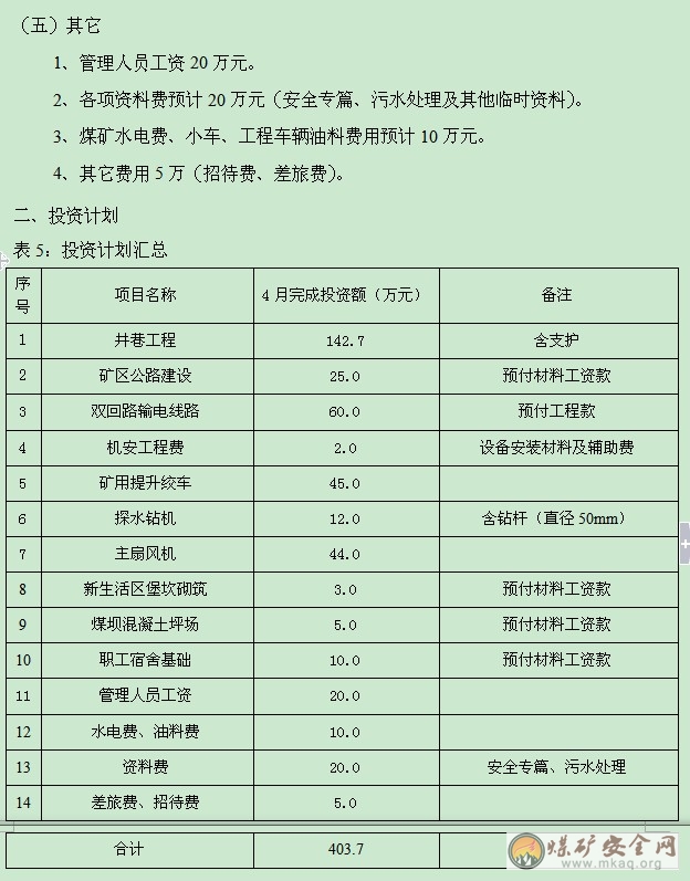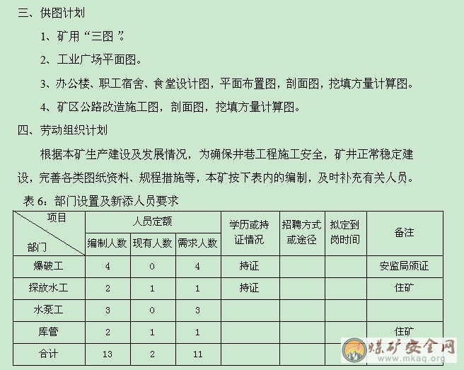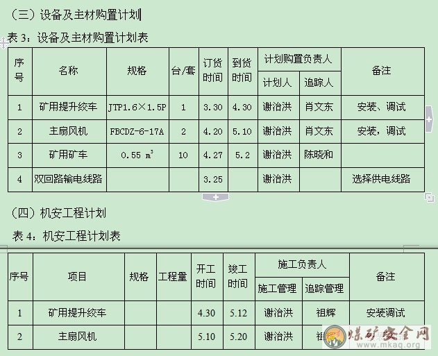 (二)建議:及時與供電部門協商,完成煤礦雙回路供電線路建設;嚴格招投標施工建設隊伍,保證施工隊伍整體素質,確保安全施工,按時完成施工進度;認真做好大型設備計劃、購置、安裝並投入使用,保證施工安全及工程進度。