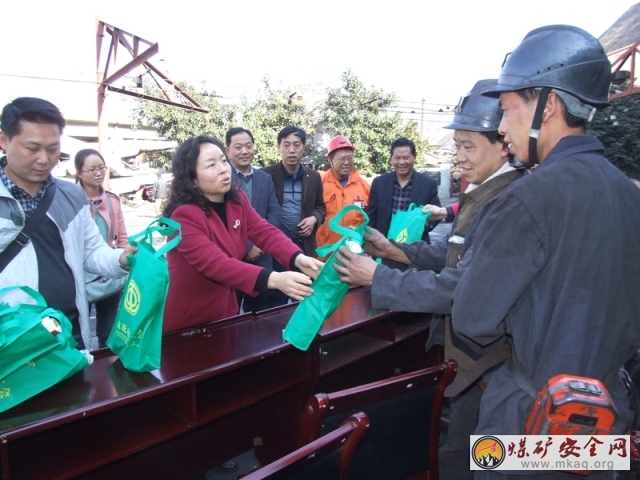 在花山礦黨委負責人的陪同下,湯幫梅一行來到井口,為上下班的職工送上印有安全祝福語的新年掛曆,及以職業病防治、井下應知應會知識為主要內容的安全知識書籍,同時,囑咐大家一定要注意安全,共同過個快樂祥和的新年。隨後,湯幫梅一行來到該礦運輸區運轉一隊,參觀了具有鮮明企業文化特色、濃厚安全文化氛圍的職工標準化學習室,該隊黨支部書記為大家展示了親情文化幻燈片,彙報了班組建設、親情文化建設等工作;在該區“職工小家”學習室,區工會負責人彙報了工會組織在職工中開展扶貧幫困、維護職工權益、促進礦區和諧穩定中所做的工作。湯幫梅一行對該區所做的工作給予了充分肯定。