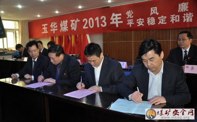 值此全國“兩會”隆重召開之際,玉華煤礦2013年黨風廉政建設暨平安穩定和諧礦區建設工作會於3月13日順利召開。麵對新形勢、新任務,該礦黨政領導認真傳達了集團公司、礦業公司黨風廉政和平安穩定和諧礦區建設工作會議精神,與基層單位簽訂了《黨風廉政建設目標責任書》和《平安穩定和諧礦區建設目標責任書》,敲定了2013年全礦黨風廉政建設和平安穩定和諧礦區建設的工作重點。