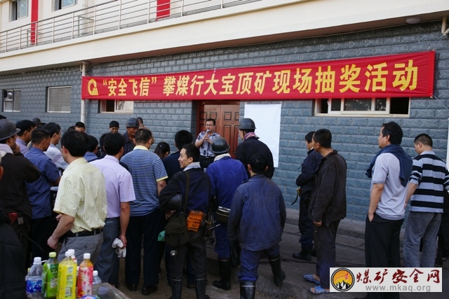 本報訊(李豔平 謝文鋒 陳揚報道)為活躍礦區安全文化氛圍,促進礦區和諧發展,4月18日,川煤集團攀煤公司安全飛信“攀煤行”抽獎活動在大寶頂礦舉行。