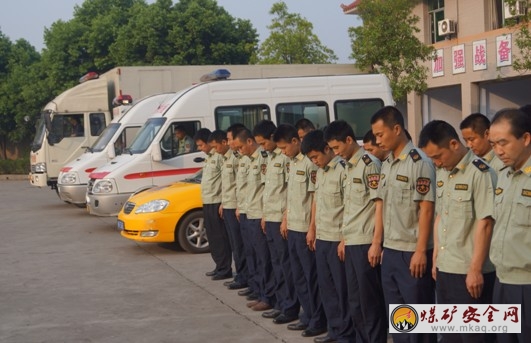 礦山救護指戰員為雅安蘆山地震遇難同胞默哀