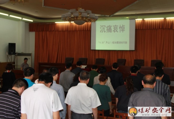 4月27日,石板選煤發電廠為沉痛哀悼蘆山“4·20”7.0級地震遇難同胞,在三樓會議室舉行默哀儀式。