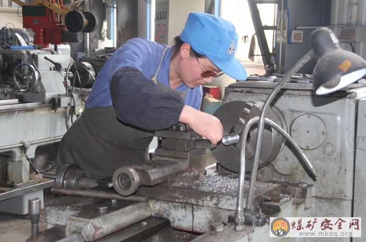 圖為:職工黨員利用廢棄的材料加工皮帶輸送機配件。(耿獻華 攝影報道)
