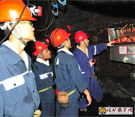 圖為礦大學生與檢修班的“勞動模範”張師傅一同來到了位於井下725米處的工作麵參觀學習,體驗煤礦工人的生活。