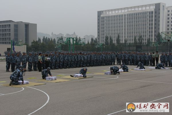 中國礦大礦業學院舉辦新生軍訓疊被子大賽