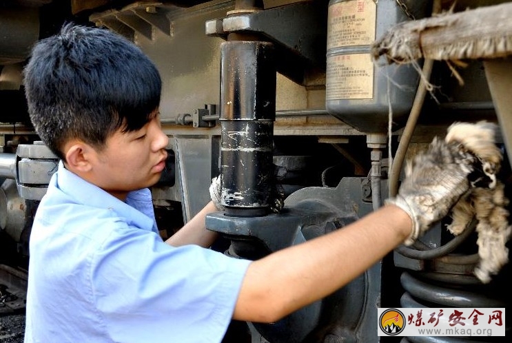 日前,陝煤化澄合鐵運分公司把提高機車質量作為保證行車安全的重點,加大對機車設備的日常維護保養和“健康”體檢力度,認真落實安全風險預控管理,及時全方位排除隱患,確保機車運用安全。圖為機務段司乘人員正在對進行機車設備日常維護保養。