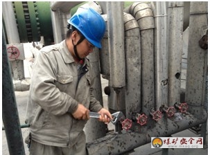 該車間召開防凍保溫專題會議,落實部署防凍保溫具體事項,及時編寫防凍保溫方案,明確責任,從班組抽調人員,專人專管;總結排查去年在防凍保溫方麵出現的問題,製定了詳細的整改計劃和改造項目,認真落實防凍改造、保溫恢複工作;把節能減排放在首位,堅決避免直排現象,及時消除跑、冒、滴、漏,減少熱量損耗,提高供熱效能;積極做好蒸汽試漏、暖氣投用、標牌統計等前期基礎工作,確保暖氣及伴熱一次性投入成功。圖為該車間員工正在緊固蒸汽管線填料