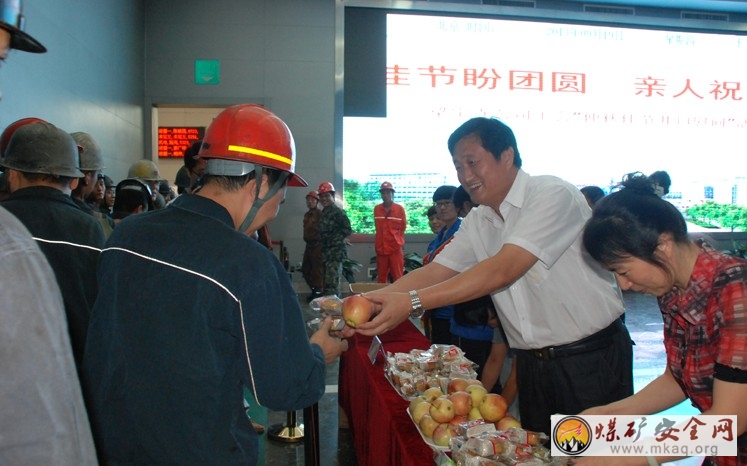 (通訊員 王愛蓮 馮倩)9月19日下午,山東能源肥礦集團梁寶寺公司工會開展了以“佳節盼團圓 親人祝平安”為主題的中秋井口送溫暖活動,該公司黨委副書記、工會主席劉勝利同工會人員、協管員代表一道,把象征平安團圓的蘋果、月餅送到了中班下井員工手中,向一線員工傳遞了節日安全祝福。活動期間,該公司醫療保健科協管分會開展了量血壓等健康查體、健康谘詢活動。