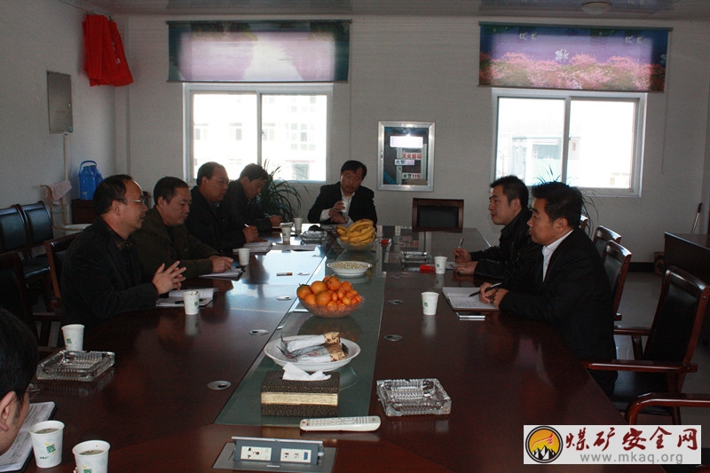 在二樓會議室,董事長範國良對王俊傑董事長一行來我公司調研表示熱烈的歡迎,並就我公司礦井建設、安全生產等方麵工作進行了介紹。