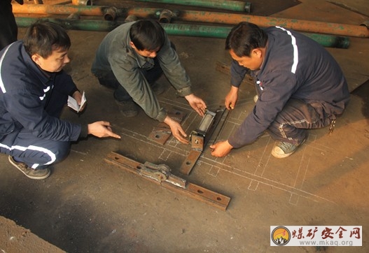 本站訊 近日,唐口煤業公司準備隊職工聶玉武創新發明了折疊式複合道岔,有效地解決了工作麵安裝期間無級繩牽引絞車直道串車難題。(圖為11月20日,準備隊職工聶玉武、賈祥忠研製氣動折疊改裝器)(段建成 崔海源)