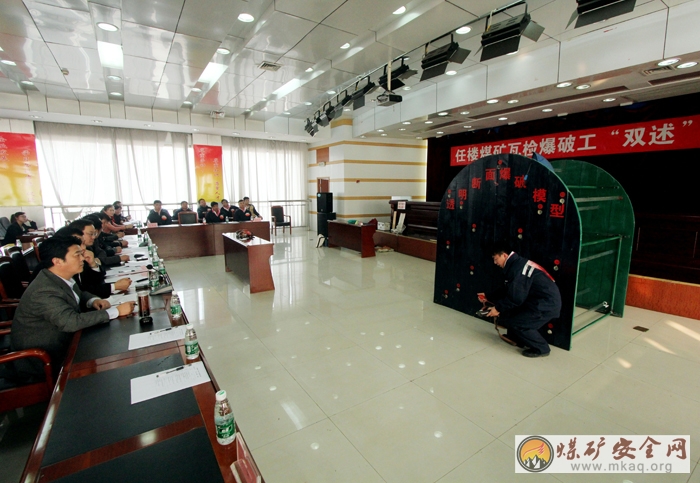 12月4日,皖北煤電任樓礦對瓦檢爆破工進行崗位“雙述”技能比武,通過以賽促學,提升特種作業人員安全操作水平。圖為比賽選手在模擬工作麵進行氣體測量。(董誌紅)