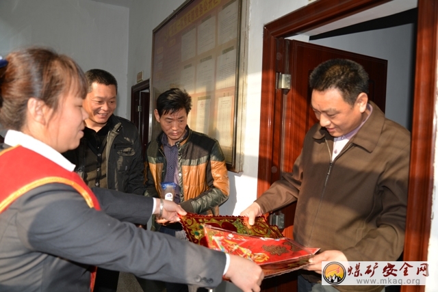 為進一步提高廣大幹部職工的安全思想意識,築牢安全生產第二道防線,近年來,該礦工會多次組織茶水站礦嫂們以“送安全快板進區隊”、“送安全囑托進班組”等多種親情幫教形式,感化礦工兄弟時刻以“安全為天”的思想警醒自己,提高他們安全對本人、家庭乃至整個礦區發展重要性和必要性的認識。如今,春節將至,礦嫂們又以“送節日安全春聯”的形式再次走進各區隊,把一張張寫有“吉祥如意幸福日,富貴平安歡樂年;美生活平平安安,好日子紅紅火火”的平安祝福春聯親手貼在各區隊門口,紅通通的春聯不僅增添了節日喜慶氣氛,聲聲真誠的囑托和熱情周到的服務更感動了每一位礦工的心。
