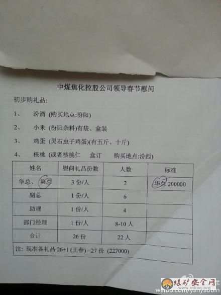 央企中煤能源禮單細節曝光 處長單筆慰問金十萬
