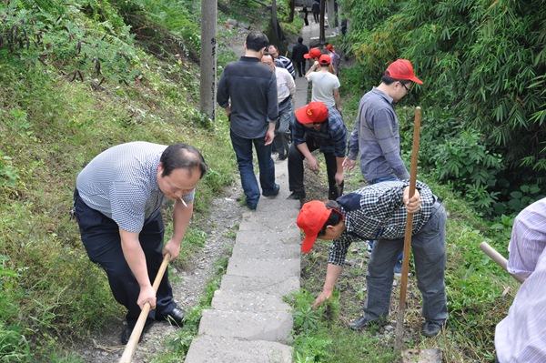 下午四點,青年誌願者們在該礦團委的組織帶領下,拿著鐵揪、鋤頭、鐮刀等工具,對該路段進行了徹底清理。有的鏟除斜坡樹枝、雜草,有的清掃路麵枯枝敗葉,有的用手拔路邊的雜草,有的清理鐵路掉落的碎石,整個現場忙得不亦樂乎。