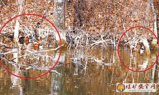 珍貴視頻資料。 同時, 還掌握了鴛鴦的生活習性、生活環境特征等。4月下旬,雌雄鴛鴦雙雙遊入水中,雄性鴛鴦頻頻向雌性鴛鴦曲頸點頭,偶而還將頭部豔麗冠羽豎直, 說明這12隻鴛鴦已進入繁殖期,並落戶於小五台山國家級自然保護區。
