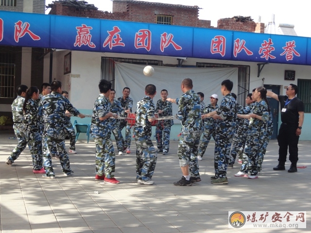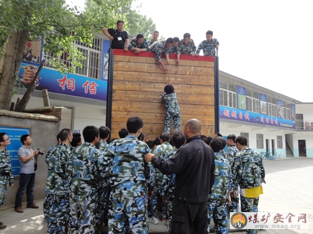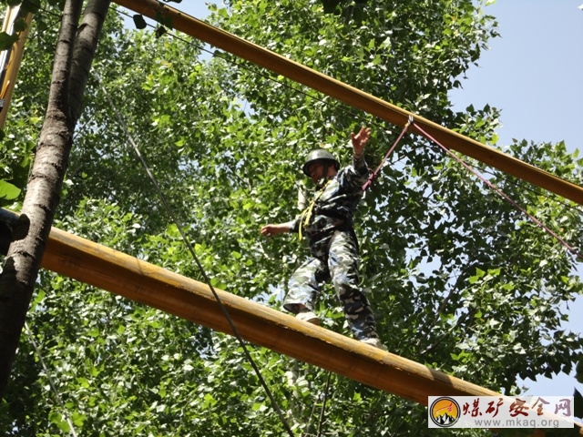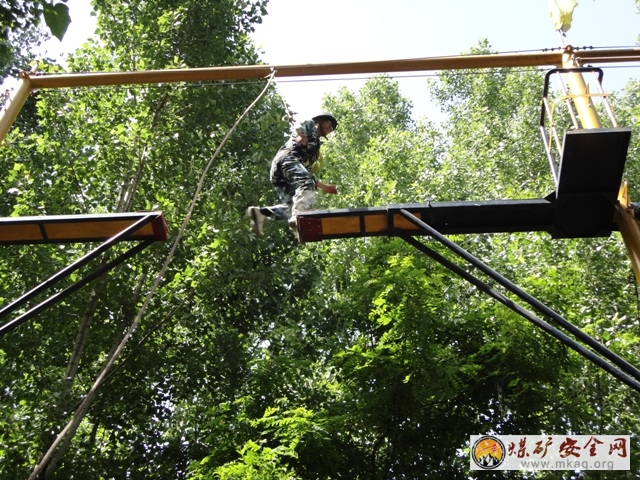 此次拓展活動主要分為兩大塊,首先是熱身賽分組,讓來自瑞能煤業、雙龍煤業、蒼村煤業的60餘名學員在娛樂的氛圍中分別起隊名,設計隊徽,想口號,這是一個集思廣益的過程,在很短的時間內要完成平時不能完成的事,當紅、黃、藍三個隊分別展示的時候,雖然隊徽設計的有些生疏,但是大家卻齊聲喊出了自己的激情和力量,然後在遊戲和歌聲中放鬆,準備迎接拓展訓練的挑戰。拓展訓練的項目分為高空和地麵項目:高空需要完成的項目有走獨木橋,走鋼絲,走獨木橋是需要單人完成的項目,這個項目挑戰的首先是個人的意誌力和膽量,第一次爬上立地10米搞的獨木橋,確實有些膽怯和害怕,但是既然是挑戰,那就有一定的規則和要求,有些膽量大的人可能很快會順利通過,膽量小的人在這個時候也不必擔心,因為自己周圍還有教練和其他隊友在為你加油鼓勁,所以在經過幾秒鍾的心裏調整以後,還是會完成任務的,其實這個過程就是一個挑戰自我,超越自我、成功自我的過程。在完成了走獨木橋以後,接下來是走鋼絲,距離地麵的高度依然是10米,和獨木橋不一樣的地方是,這次是兩個人同時走,而且是相互攙扶著走,這個過程要求兩個人要很好的配合,才能順利到達目的地,合作默契的人會很順利,如果在行走的過過程中有一個人鬆開了另外一個人的手,那麼另外一個隊員將落後,這也不算成功。在每次做完一個項目之後,教練都會組織所有學員進行一個簡短的總結和回顧會,讓每個人談感受和體會,同時還會根據訓練項目的不同穿插的講一些寓意深刻得道理,使每個學員的寓教於樂中學到更多的拓展知識。