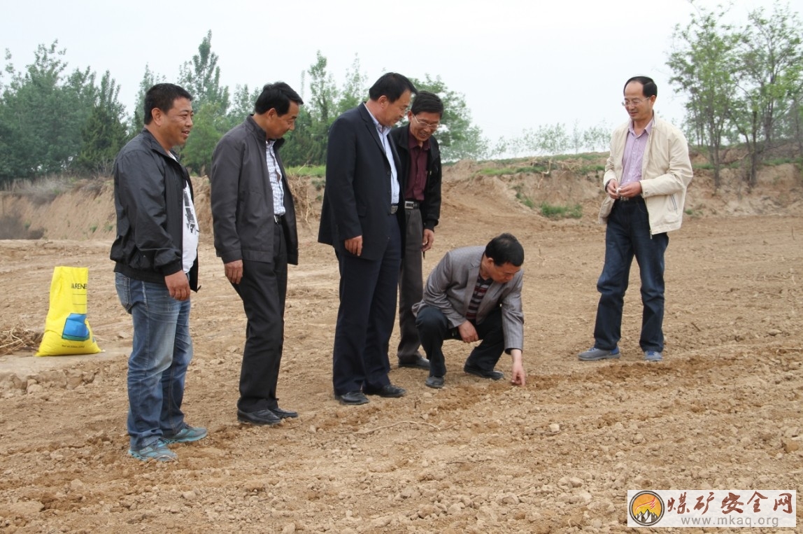 5月13日上午,澄合實業公司總經理馬明、副總經理楊學斌、楊蘇乾在澄合農林中心主任崔憲明的陪同下到澄合農林中心蔡鄧林場檢查指導林場開發整地及苜蓿種植工作。馬總一行深入施工工地,通過聽取彙報、實地查看等方式就平整土地及苜蓿種植進度、種植密度、畝需種籽數量及播種後出苗等情況進行了詳細了解。對平整土地、苜蓿種植進度及出苗情況給予了肯定,並要求蔡鄧林場平整土地、苜蓿種植工作要保質保量,按時完
