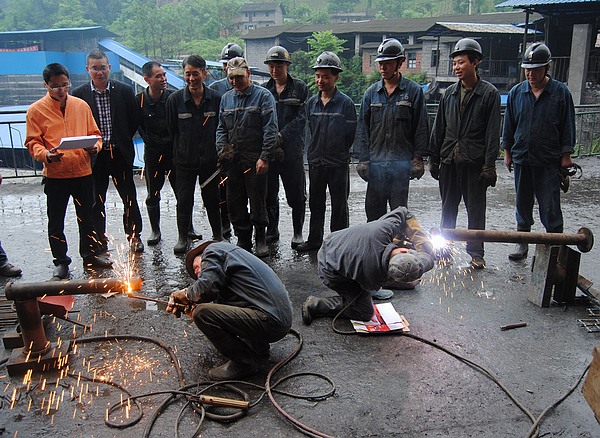 此次技能比武內容為,參賽選手用割槍沿直徑76毫米鋼管的圓周表麵切割一周,然後再將割縫用電焊焊好。主要考核焊工的焊前準備、焊縫咬邊、焊瘤、氣孔、夾渣、焊縫餘高、尺寸、外觀表麵、時間要求及安全環保。比賽中,參賽選手精神飽滿,手持焊槍,頭戴防護罩,以良好的心理素質和較高的技能水平投入比賽。