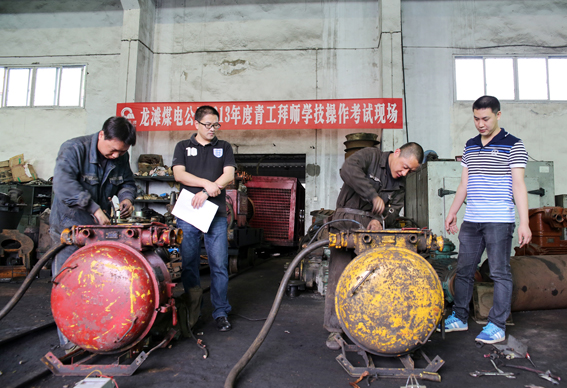 本網訊 為檢驗2013年度新進職工在“拜師學技”活動中掌握的安全知識和業務技能,5月23日,龍灘煤電公司開展了青工“拜師學技”操作考試。
