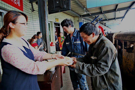 “師傅,辛苦了,端午節快樂,休息一下,吃個香甜的粽子吧,工作時不要違章,多多注意安全”工會女工詹樂囑咐道……