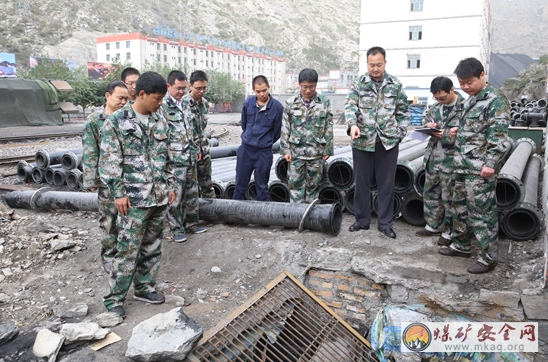 圖為眾維煤業黨委副書記雷永超帶領各科室人員在檢查防洪溝