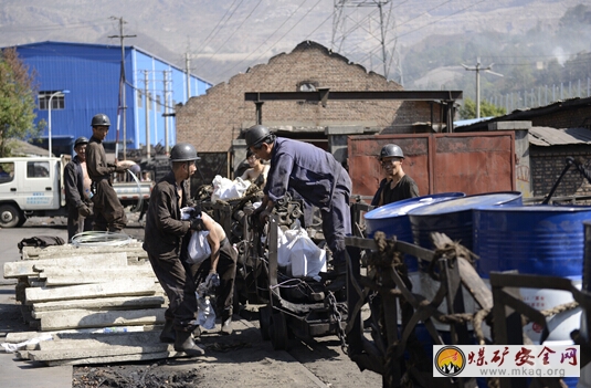 鏡頭三:上午10:12,一群職工將井下支護材料和生產用的一些配件裝車運住井下。