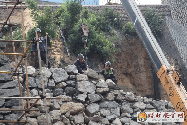 雨季來臨,護坡大牆受地表雨水衝刷影響,內部黃土流失,地麵存在塌陷和山體滑坡的危險。針對這一安全隱患問題,石家坡煤礦組織職工對工業廣場周邊護坡大牆及山體進行噴漿加固,對未做護坡處理的進行砌築護坡牆,起到了良好的治理效果。同時,主斜井缺口處砌築護坡牆為礦節約開支近6萬元。