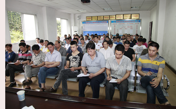 措施;政工人員展開形勢任務教育。職工們認真聽講,仔細做好學習筆記。