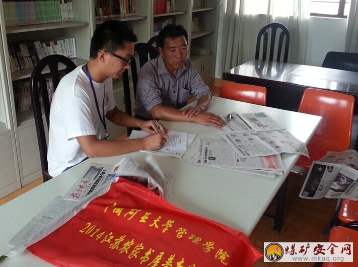 2014年7月24日,中國礦業大學管理學院“農家書屋實踐團”乘坐火車到達調查目的地——新沂市。全隊成員不懼酷暑,稍作整頓便開始了本次的普查活動。本次實踐旨在走進每一個農家書屋,真實地了解書屋的運營情況並記錄農家書屋存在的問題,切實反映農民的讀書需求。