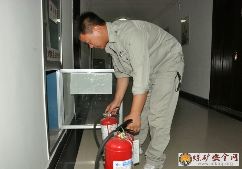 為及時消除安全隱患,確保消防器材都能正常使用。神華寧煤集團煤化工分公司公用工程管理處對生產係統、辦公區域內消防器材進行全麵檢查。檢查包括滅火器的使用狀況是否正常,氣壓是否符合標準,有沒達報廢年限及有無缺損狀況,發現問題及時整改。圖為8月1日,該處員工正在檢查辦公樓滅火器。(通訊員 楊嘉)