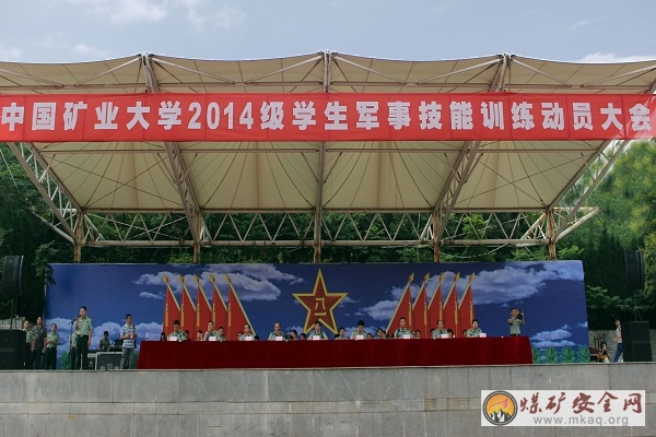 9月6日下午,中國礦業大學2014級新生軍訓動員大會在第二運動場舉行。校黨委副書記曹德欣、承訓部隊領導、學生軍訓旅組成單位負責人和各學院相關領導出席了此次動員大會。機電學院14級隨訓輔導員張婉秋老師、葉景東老師和全體14級新生參加了此次動員大會。